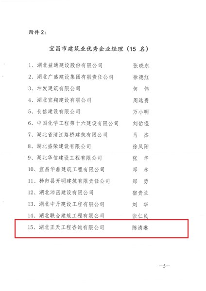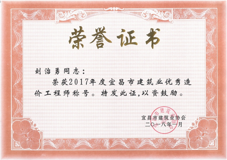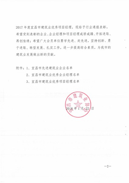 2017年度宜昌市建筑业优秀企业、优秀经理、优秀项目经理